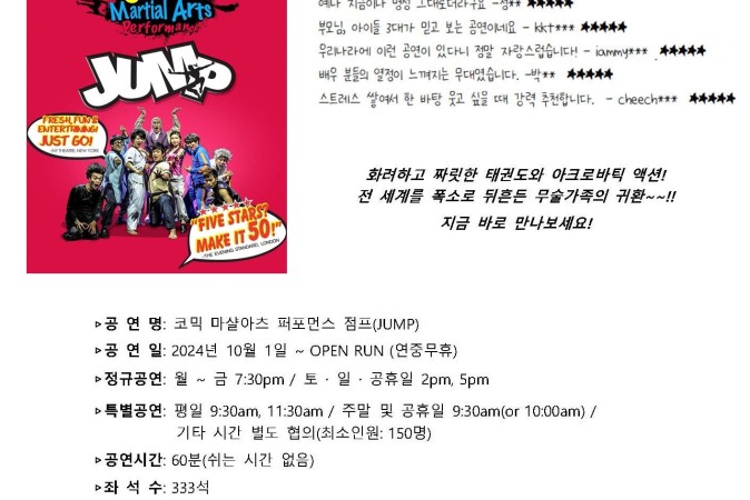 서울중구 코믹 마샬아츠 퍼포먼스 점프(JUMP)