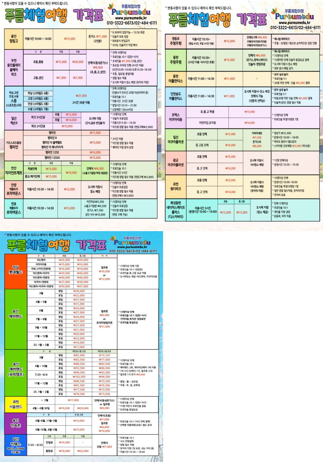 2024 푸름체험 종합지 페이지 정보 작성자 푸름체험여행 댓글 0건 조회 364회 작성일 24-06-25 17:01 목록 본문 2024년 푸름체험 종합지입니다. 다음글찾아가는 체험학습 안내문 24.06.19 댓글 0 댓글목록 등록된 댓글이 없습니다. 목록
